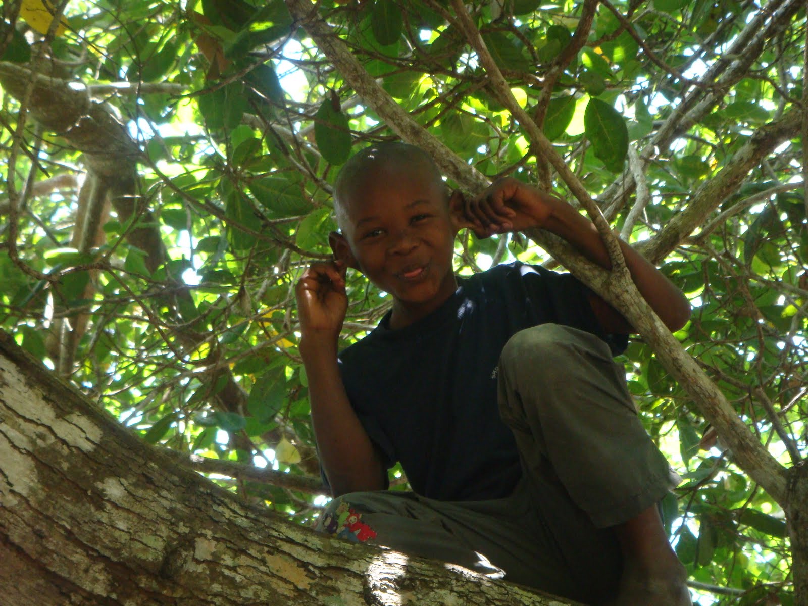Gotta love it, when you walk in a forest, look up to find a little boy making silly faces at you!
